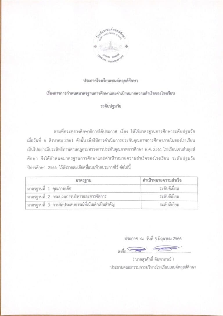 ฝ่ายมาตรฐานคุณภาพ เรื่อง การการกำหนดมาตรฐานการศึกษาและค่าเป้าหมายความสำเร็จของโรงเรียน ระดับการศึกษาขั้นพื้นฐาน